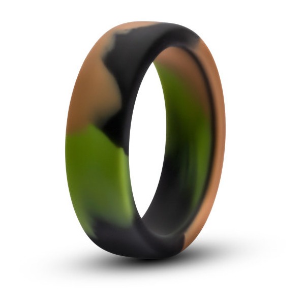 Performance Silicone Camo Cock Ring Green Camouflage from Blush Novelties. Comfort. Soft and stretchy for greater wear. No slip. Flat design for a secure fit. Quality. Smooth satin Platinum Silicone. Peace of mind. Made of body safe Silicone. Contains no...