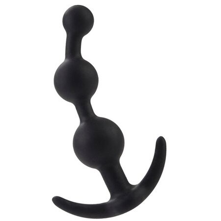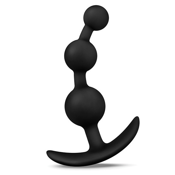 Anal Adventures Platinum Small Anal Beads Black from Blush Novelties. For anyone looking to explore new anal sensations alone or with a partner! Anal Adventures Platinum provides anatomically targeted options, all made of 100% satin smooth, platinum cured silicone. The Small Anal Beads three beads will curve with your body, while the anchor base rests comfortably between your cheeks.